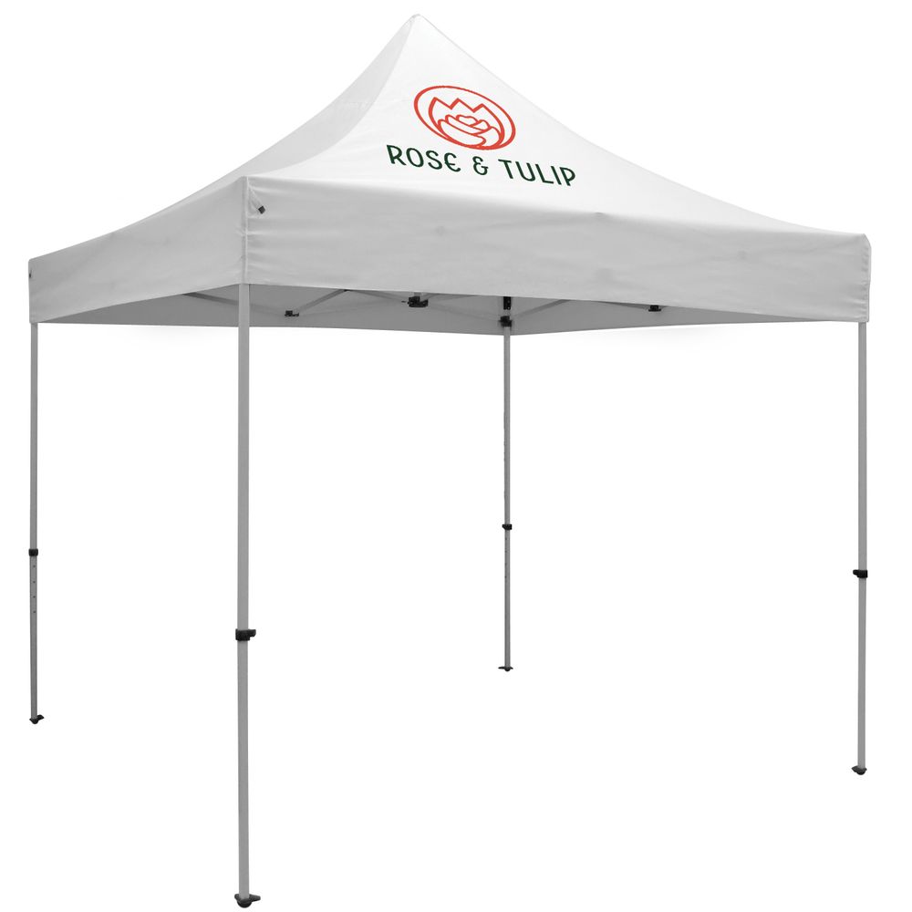 This is not a rental item. This is a customized tent printed with the Nucor logo or your division logo. The turn time is 10–12 business days. Pricing includes logo in full color, one location. This tent offers 8 locations of imprint. Additional imprint locations increase the price of the tent. If you would like add imprint locations, please give us a call at 704-334-9333 or shoot us an email at customerservice@logodgear.com