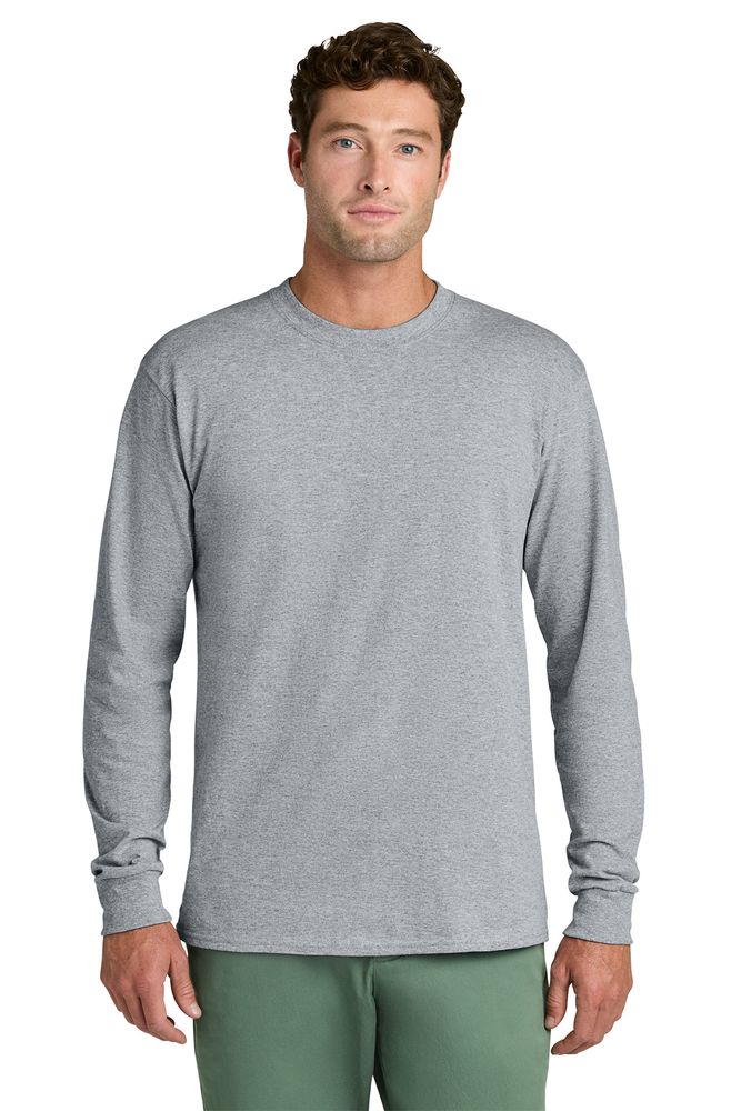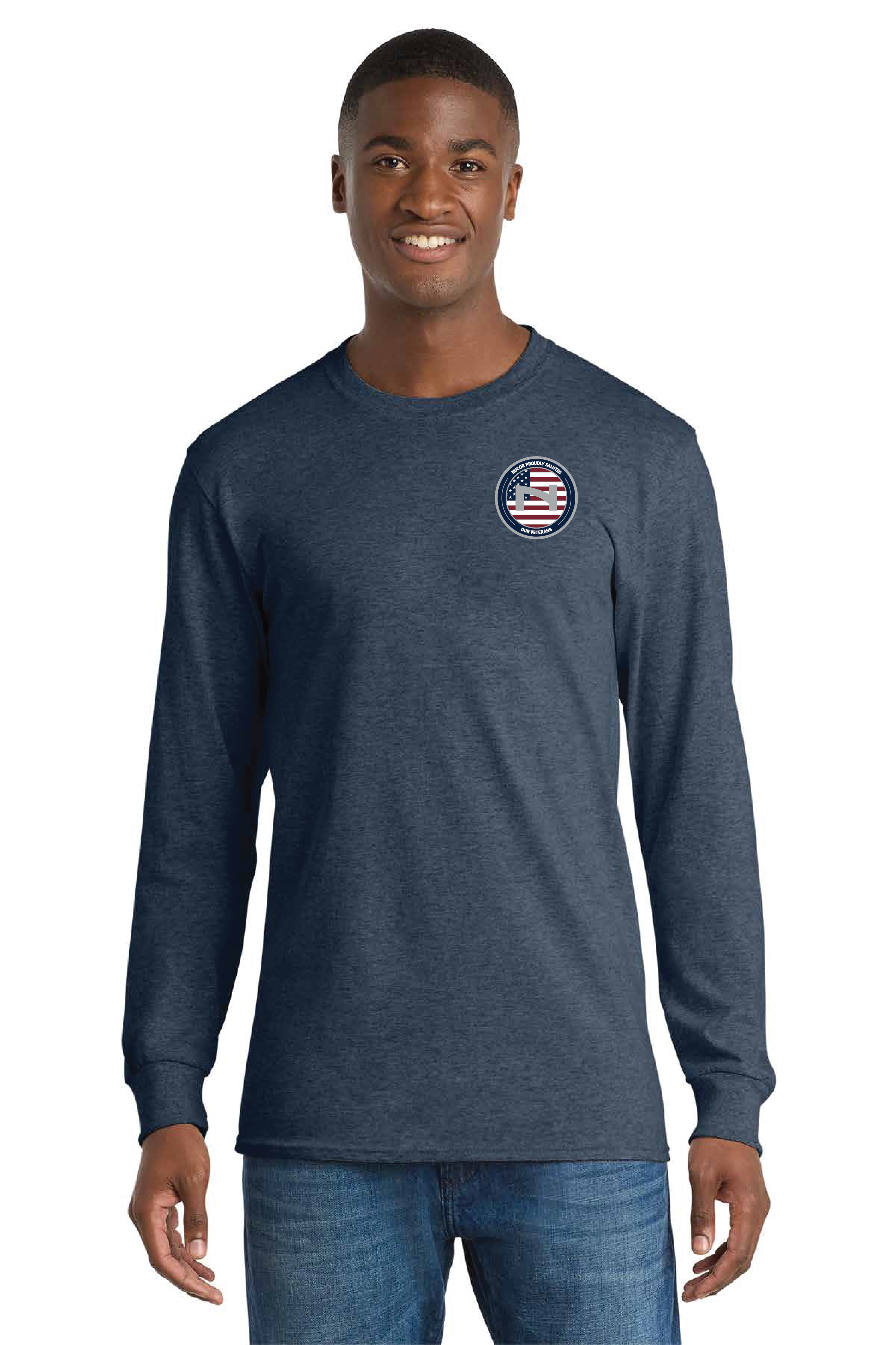 • 50/50 cotton/poly (Dark Heather Grey, Heather Navy)